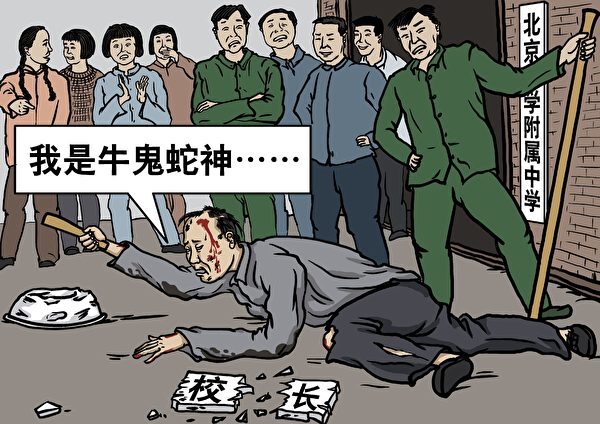 古人云:「一日為師,終生為父」。1966年8月5日,北京師範大學女子附屬中學卞仲耘老師被女學生們戴高帽子、往身上潑黑墨、敲簸箕遊街、掛黑牌子、強迫下跪、用帶釘子的木棍打、用開水燙等等方法活活打死。北京大學附屬中學的女校長被學生強迫敲着一個破臉盆喊「我是牛鬼蛇神」,頭髮亂七八糟被剪光,頭打出了血,推倒在地上爬。