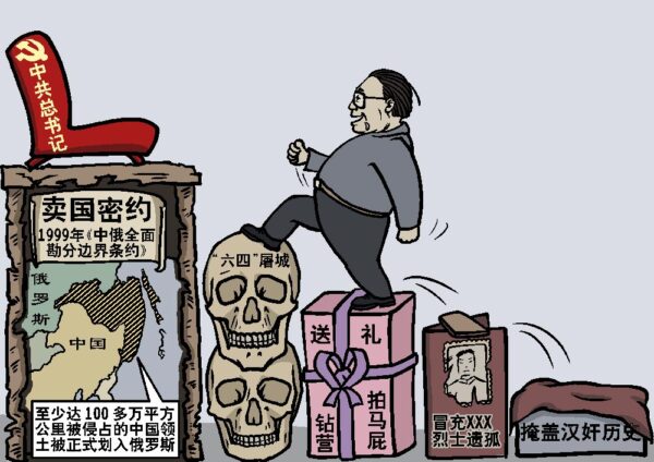 縱觀江澤民的簡歷,他以漢奸長子冒充烈士遺孤,親身實踐共產黨的「騙」字訣;支持屠殺學生,鎮壓民運和信仰人士,親身實踐共產黨的「殺」字訣;中共曾作為共產國際遠東支部處處聽命於蘇聯,江澤民則無償獻上土地,親身實踐共產黨的「賣」字訣。