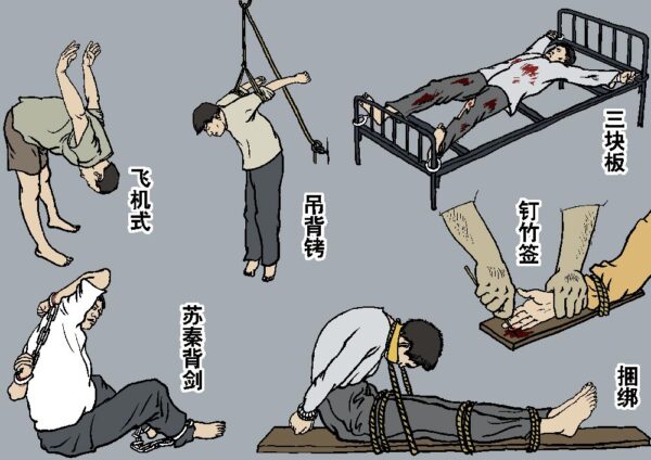 而施加在法輪功學員身上的各種酷刑,更是多不勝數,毆打、鞭打、電刑、冷凍、捆綁、長時間鐐銬、火燒、烙燙、吊刑、長時間站、跪、竹籤和鐵絲穿扎、性虐待、強姦等等等等。2000年10月,遼寧省馬三家教養院看守人員將18名女學員衣服剝光後把她們投入男犯監牢……。所有這一切,斑斑在冊,罄竹難書。